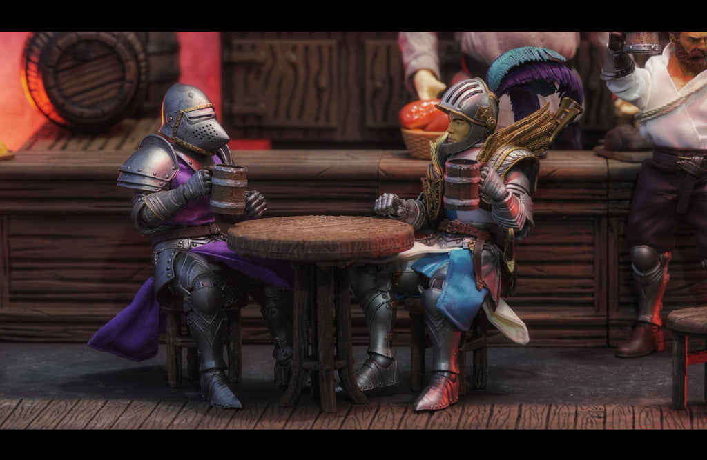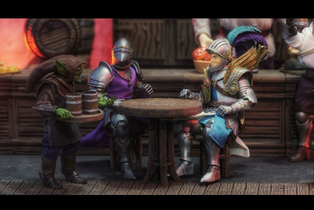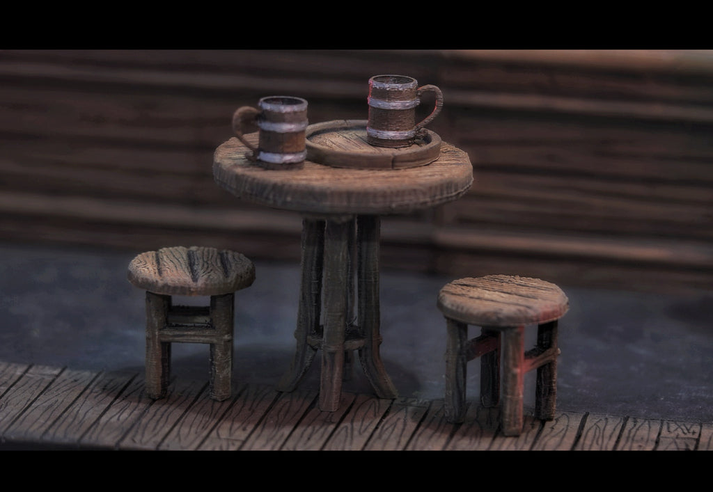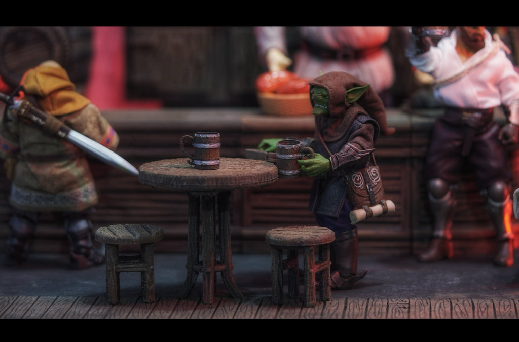 Figgie Smalls - 1/12 Table and Chairs with Steins and Tray - 3D Printed and Painted
