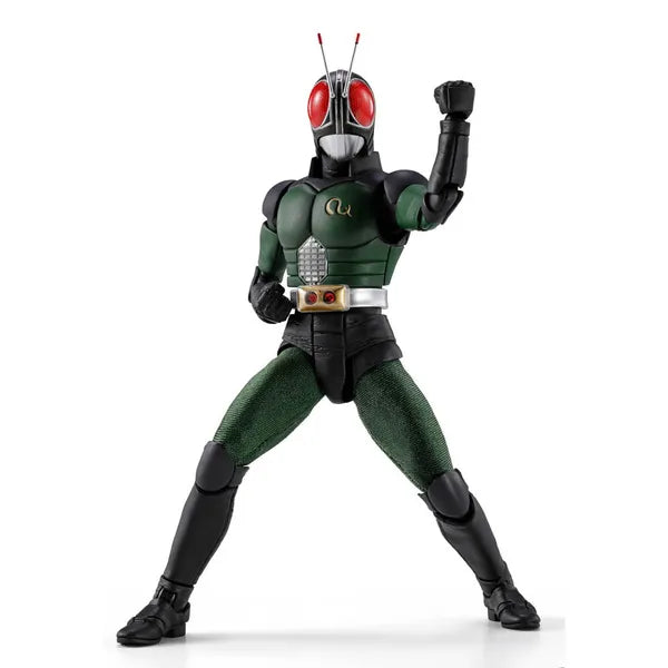 Harnessing techniques honed by the Shinkocchou Seihou series—such as skeletal estimation sculpting and pursuit of articulation—the figure faithfully recreates the on-screen Kamen Rider BLACK RX. As in the show, fabric is used for the distinctive thighs.