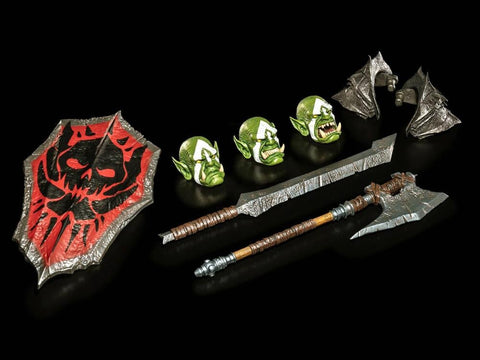 The Legacies of Mythoss: Urzokk figure comes with 3 newly sculpted heads with 3 different expressions – stoic, gritted teeth, and battle cry! As for weapons, Urzokk v2 also comes with 3 new weapons, including a wicked sword and a brutal battle axe plus a large shield painted with the same symbol that was found on the first Urzokk figure’s shield.