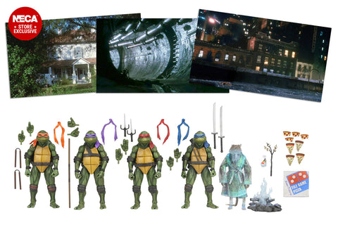 Shell-a-brate the 35th anniversary of the original Teenage Mutant Ninja Turtles movie with this NECA Store Exclusive! After wading in a puddle of radioactive waste, four radical reptiles are transformed into New York City’s greatest crime-fighting quartet! This special anniversary 5-pack features the original 1990 movie versions of Leonardo, Donatello, Raphael, Michelangelo, and the Spirit of Splinter. That’s right, one of the most sought-after figures in our TMNT movie collection has finally been re-released!