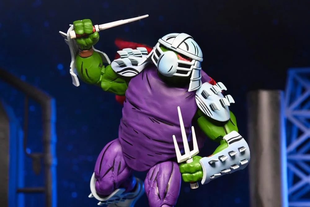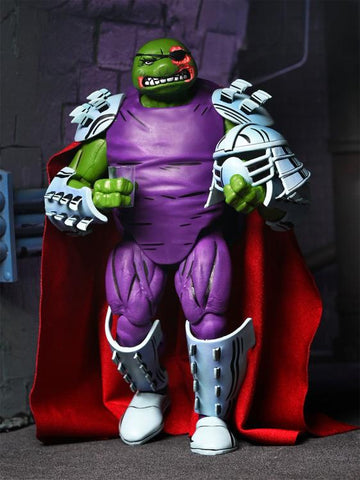 As seen in Eastman & Laird’s Teenage Mutant Ninja Turtles comic books from Mirage Studios! Raphael takes the mantle of The Shredder with an all-new sculpt from NECA. This 7-inch scale action figure includes two heads (damaged and angry eyepatch). Plus, a soft goods cape, removable helmet, extra hands, sais, pitcher, and glass. Comes in collector-friendly packaging with original artwork by Kevin Eastman.